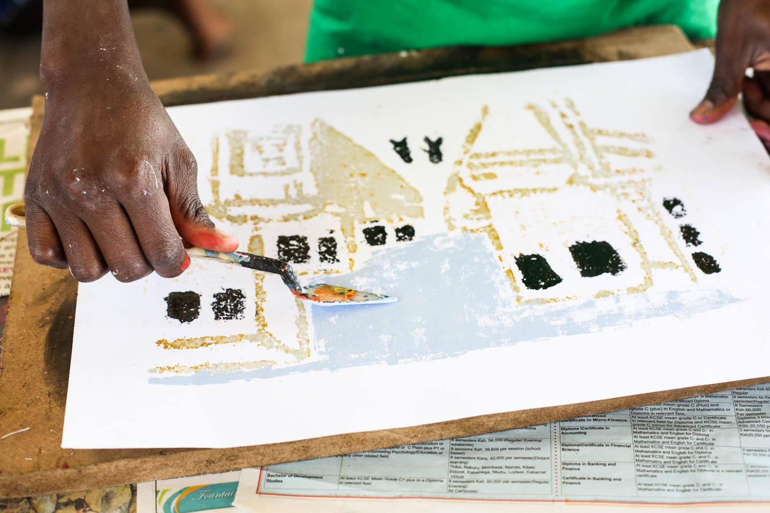 Nel Laboratorio di Arte, si organizzano, periodicamente, con la collaborazione di artisti contemporanei africani ed europei, workshop di pittura e scultura, utilizzando materiali di recupero per educare i bambini alla creatività e introdurre temi come il rispetto dell’ambiente e il riciclo.